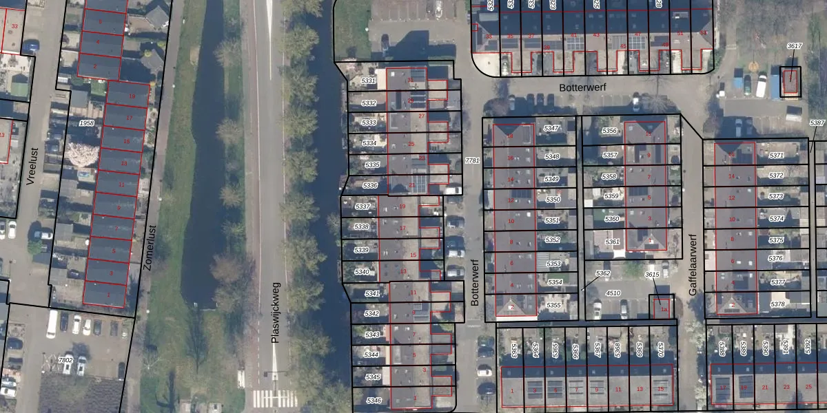 Botterwerf 19 is gelegen op kadastraal perceel GDA01M5337. Deze kadastrale aanduiding is uniek en wordt gebruikt door het Kadaster om eigendomsrechten en andere zakelijke rechten vast te leggen. Het perceel maakt onderdeel uit van de kadastrale gemeente Gouda.