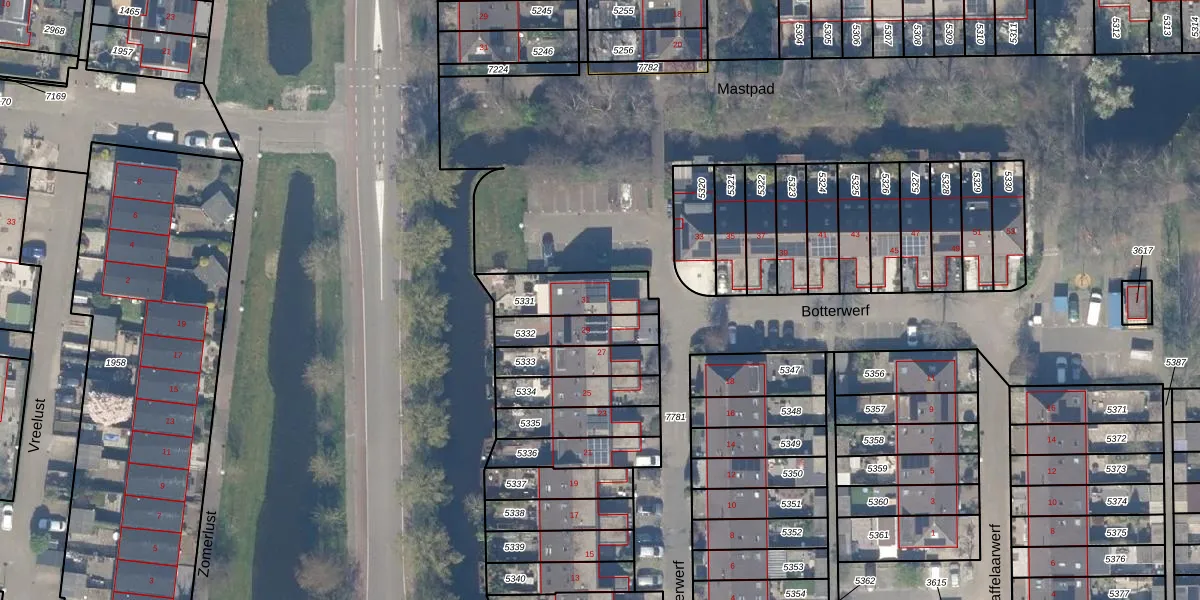 Het perceel waarop Botterwerf 31 staat heeft een oppervlakte van 194 m². Dit is een middelgroot perceel. De perceeloppervlakte wordt geregistreerd door het Kadaster. Gedetailleerde informatie over de maten van dit perceel kunt u vinden in het rapport Kadastrale kaart met maatvoering van Botterwerf 31.
