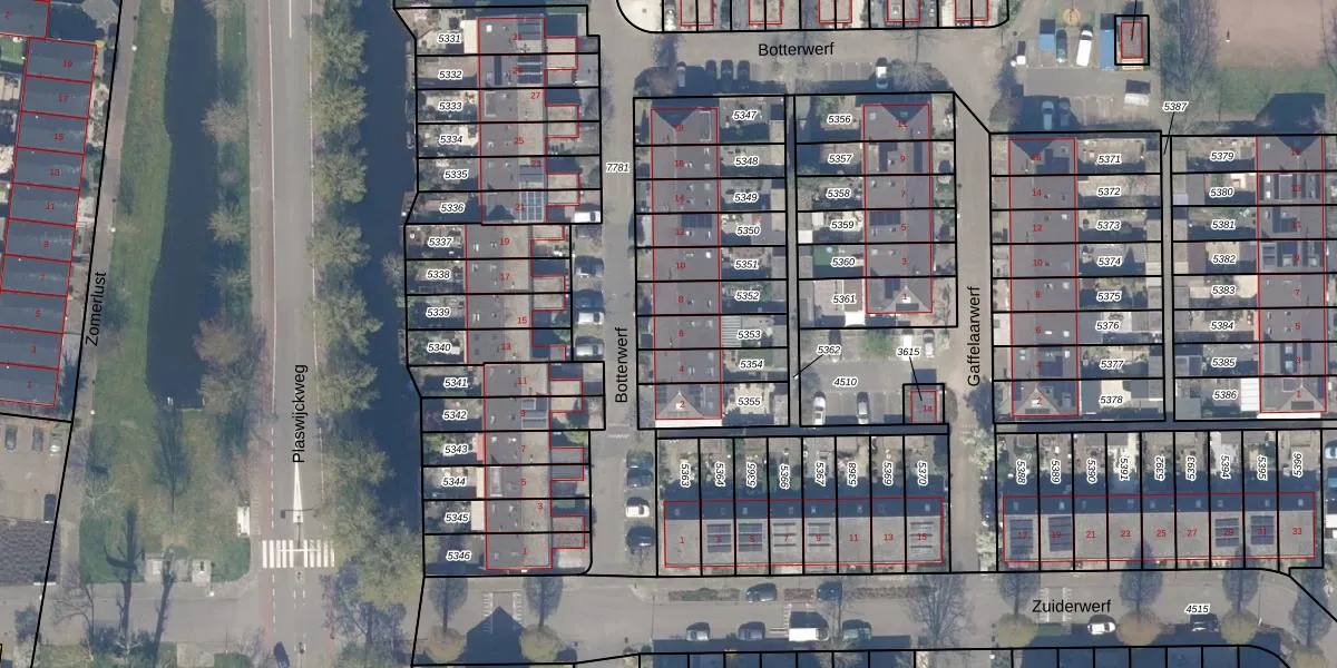 Botterwerf 6 is gelegen op kadastraal perceel GDA01M5353. Deze kadastrale aanduiding is uniek en wordt gebruikt door het Kadaster om eigendomsrechten en andere zakelijke rechten vast te leggen. Het perceel maakt onderdeel uit van de kadastrale gemeente Gouda.
