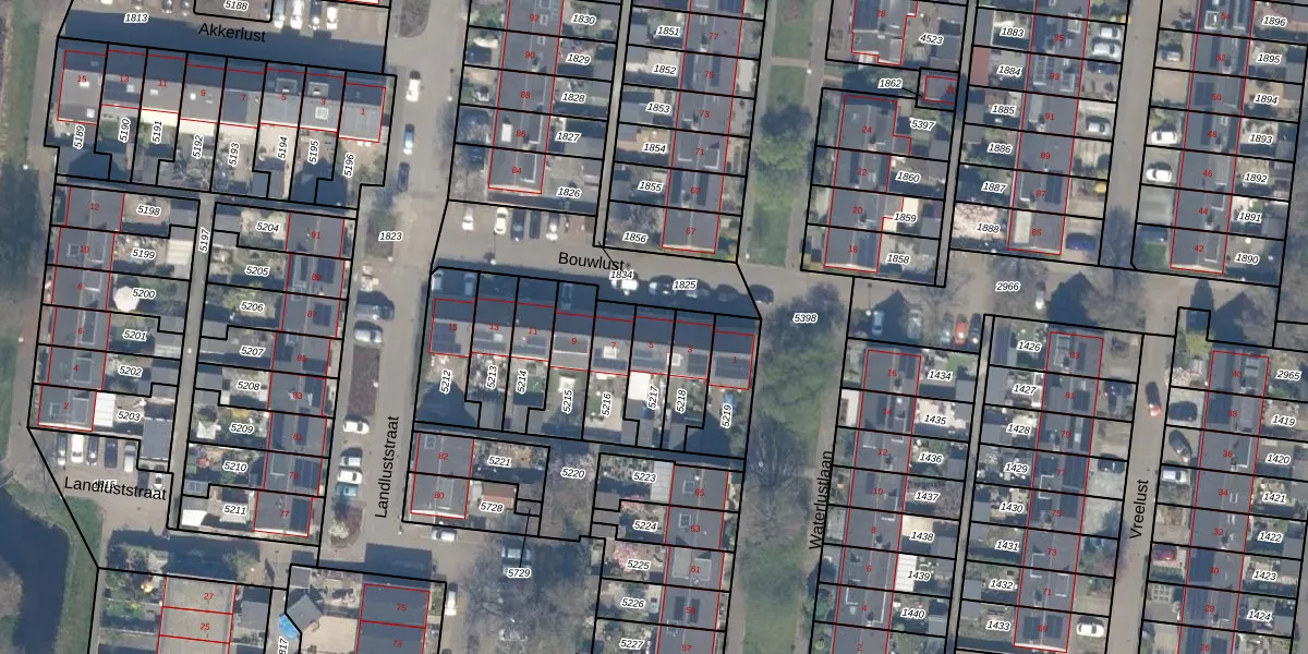 Het perceel waarop Bouwlust 5 staat heeft een oppervlakte van 122 m². Dit is een middelgroot perceel. De perceeloppervlakte wordt geregistreerd door het Kadaster. Gedetailleerde informatie over de maten van dit perceel kunt u vinden in het rapport Kadastrale kaart met maatvoering van Bouwlust 5.