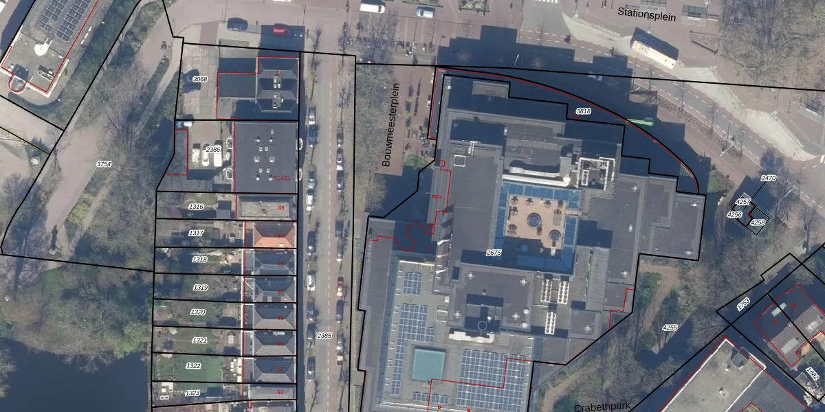 Bouwmeesterplein 1 is gelegen op kadastraal perceel GDA01H2675. Deze kadastrale aanduiding is uniek en wordt gebruikt door het Kadaster om eigendomsrechten en andere zakelijke rechten vast te leggen. Het perceel maakt onderdeel uit van de kadastrale gemeente Gouda.