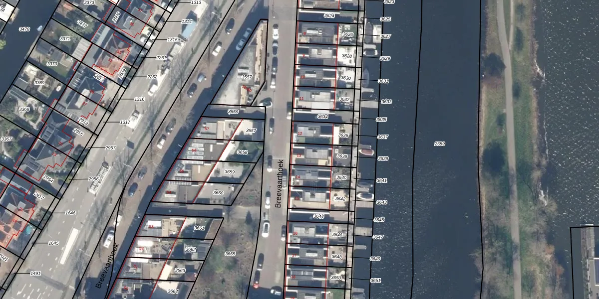 Breevaarthoek 13 is gelegen op kadastraal perceel GDA01I3638. Deze kadastrale aanduiding is uniek en wordt gebruikt door het Kadaster om eigendomsrechten en andere zakelijke rechten vast te leggen. Het perceel maakt onderdeel uit van de kadastrale gemeente Gouda.