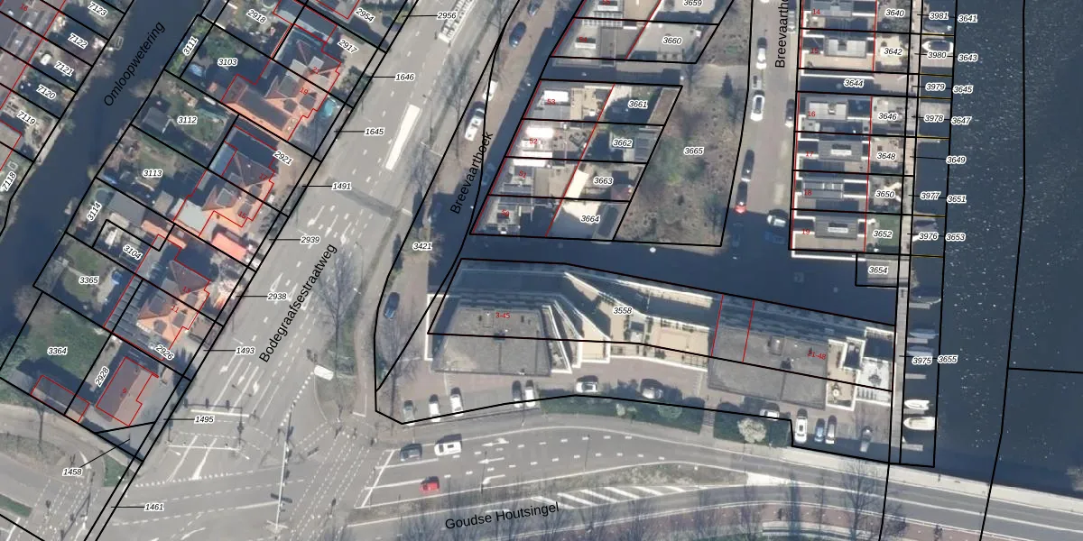 Breevaarthoek 38 is gelegen op kadastraal perceel GDA01I3558. Deze kadastrale aanduiding is uniek en wordt gebruikt door het Kadaster om eigendomsrechten en andere zakelijke rechten vast te leggen. Het perceel maakt onderdeel uit van de kadastrale gemeente Gouda.