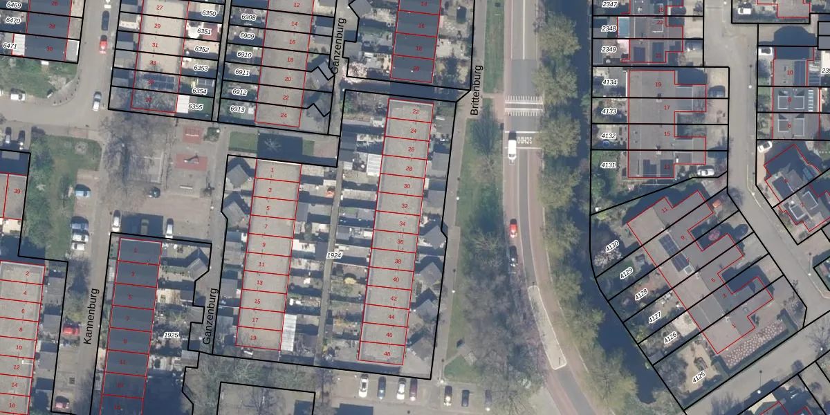 Het perceel waarop Brittenburg 32 staat heeft een oppervlakte van 3094 m². Dit is een zeer groot perceel. De perceeloppervlakte wordt geregistreerd door het Kadaster. Gedetailleerde informatie over de maten van dit perceel kunt u vinden in het rapport Kadastrale kaart met maatvoering van Brittenburg 32.
