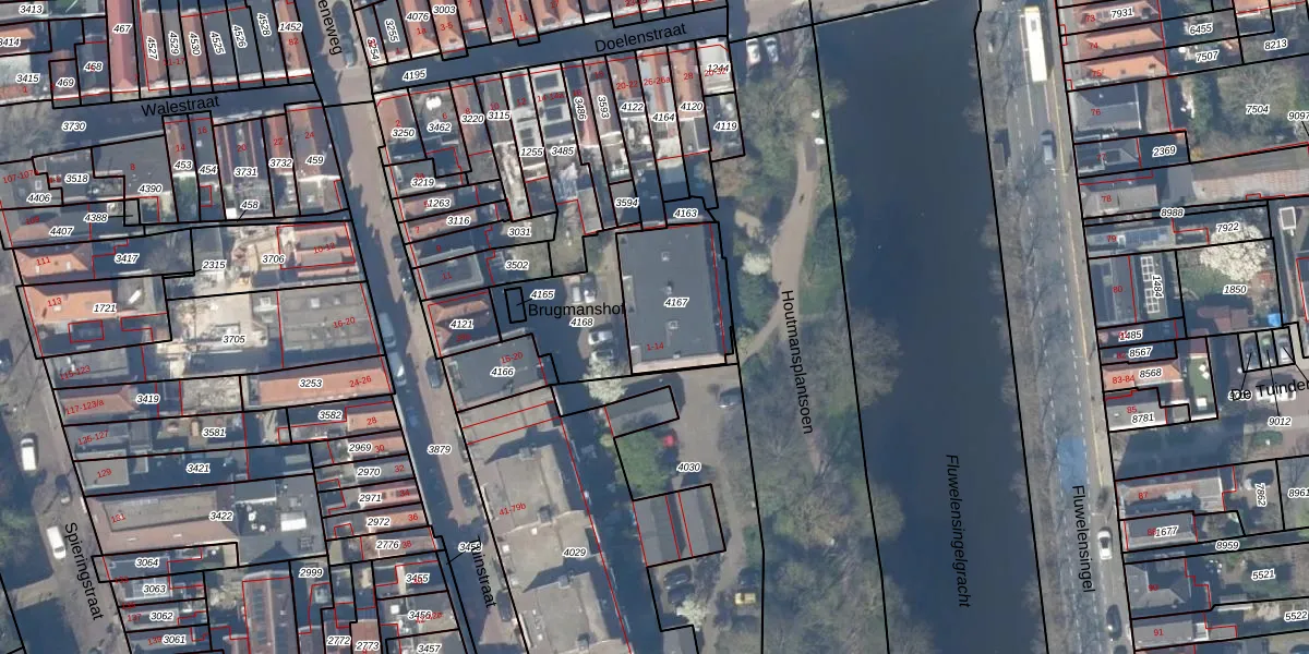 Het adres ligt op het perceel GDA01-C-4167, dat zich in de kadastrale gemeente Gouda bevindt. Het perceel is kleiner dan gemiddeld in Gouda. Het perceel is 352 m² groot, terwijl het gemiddelde ligt op 678,78 m². De grootste perceeloppervlakte in de kadastrale gemeente is 24,2 ha. De kleinste oppervlakte bedraagt 0 m². Er zijn 14 adressen aanwezig op het perceel. De huidige grenzen van het perceel zijn digitaal in de Basisregistratie Kadaster (BRK) geregistreerd op 05-02-1998.