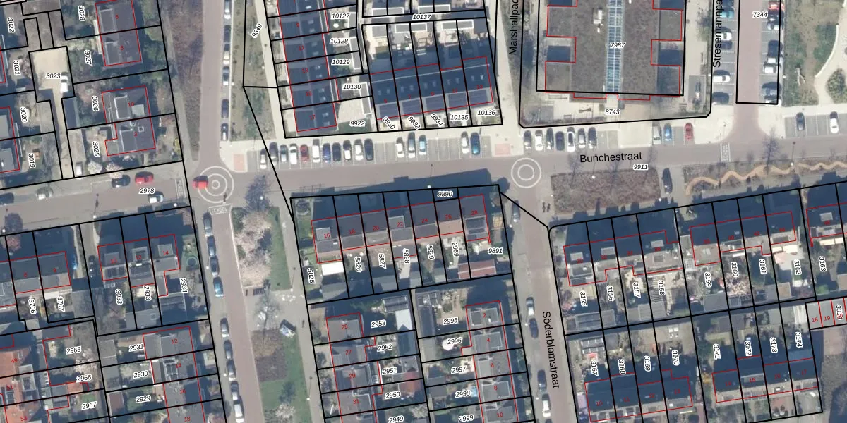 Het perceel waarop Bunchestraat 24 staat heeft een oppervlakte van 134 m². Dit is een middelgroot perceel. De perceeloppervlakte wordt geregistreerd door het Kadaster. Gedetailleerde informatie over de maten van dit perceel kunt u vinden in het rapport Kadastrale kaart met maatvoering van Bunchestraat 24.