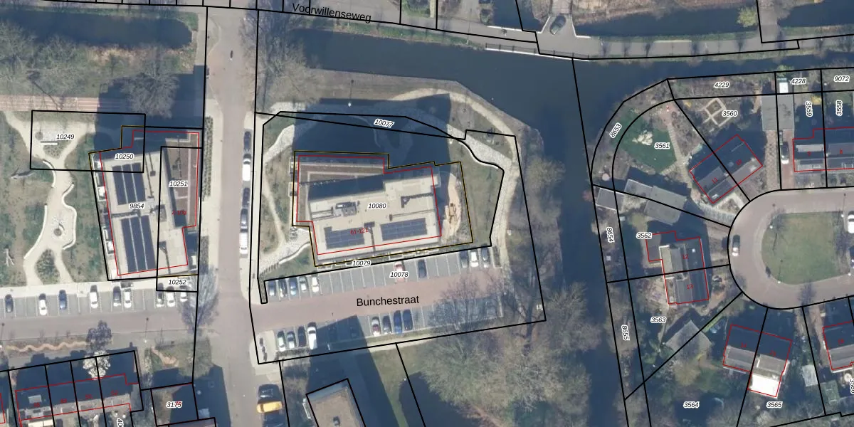 Het perceel waarop Bunchestraat 75 staat heeft een oppervlakte van 894 m². Dit is een groot perceel. De perceeloppervlakte wordt geregistreerd door het Kadaster. Gedetailleerde informatie over de maten van dit perceel kunt u vinden in het rapport Kadastrale kaart met maatvoering van Bunchestraat 75.