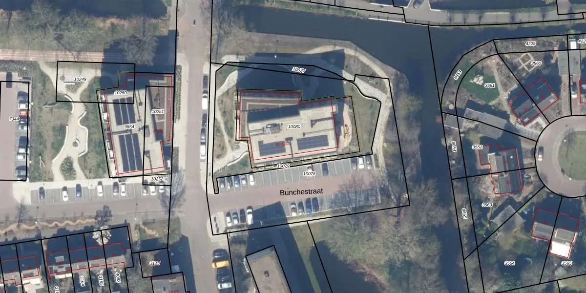 Het perceel waarop Bunchestraat 79 staat heeft een oppervlakte van 894 m². Dit is een groot perceel. De perceeloppervlakte wordt geregistreerd door het Kadaster. Gedetailleerde informatie over de maten van dit perceel kunt u vinden in het rapport Kadastrale kaart met maatvoering van Bunchestraat 79.