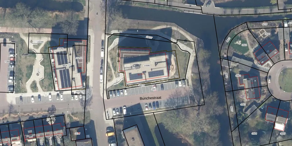 Bunchestraat 93 is gelegen op kadastraal perceel GDA01K10080. Deze kadastrale aanduiding is uniek en wordt gebruikt door het Kadaster om eigendomsrechten en andere zakelijke rechten vast te leggen. Het perceel maakt onderdeel uit van de kadastrale gemeente Gouda.