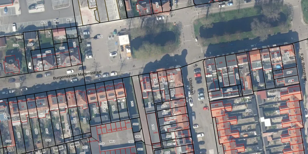 Gebruik de zoekbalk of klik op een perceel voor informatie over de adressen binnen dit perceel.