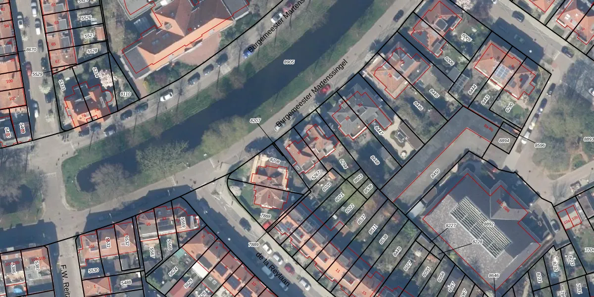 Burgemeester Martenssingel 87 is gelegen op kadastraal perceel GDA01A5267. Deze kadastrale aanduiding is uniek en wordt gebruikt door het Kadaster om eigendomsrechten en andere zakelijke rechten vast te leggen. Het perceel maakt onderdeel uit van de kadastrale gemeente Gouda.
