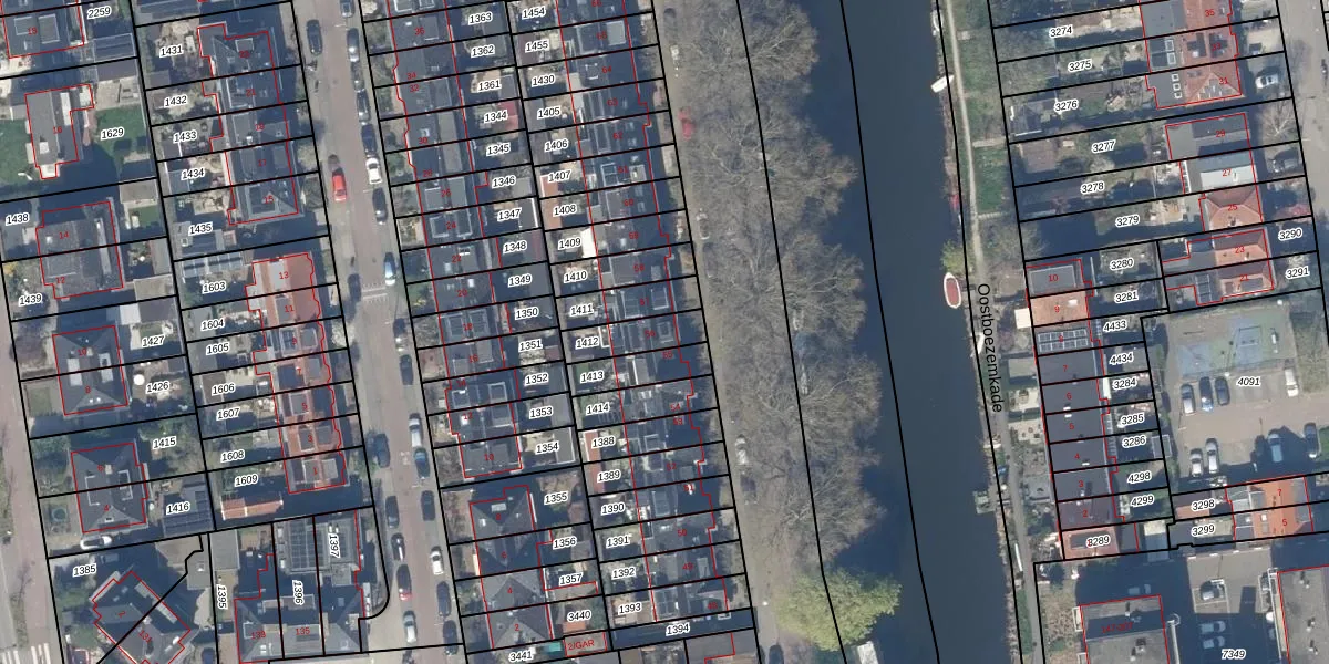 Gebruik de zoekbalk of klik op een perceel voor informatie over de adressen binnen dit perceel.