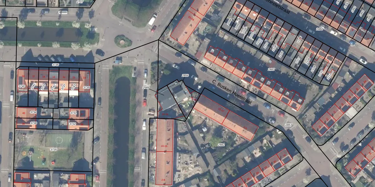 Het perceel waarop C. Busken Huetstraat 21 staat heeft een oppervlakte van 177 m². Dit is een middelgroot perceel. De perceeloppervlakte wordt geregistreerd door het Kadaster. Gedetailleerde informatie over de maten van dit perceel kunt u vinden in het rapport Kadastrale kaart met maatvoering van C. Busken Huetstraat 21.