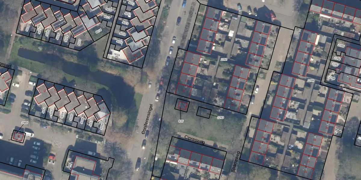 Coniferensingel 15 is gelegen op kadastraal perceel GDA01M2292. Deze kadastrale aanduiding is uniek en wordt gebruikt door het Kadaster om eigendomsrechten en andere zakelijke rechten vast te leggen. Het perceel maakt onderdeel uit van de kadastrale gemeente Gouda.