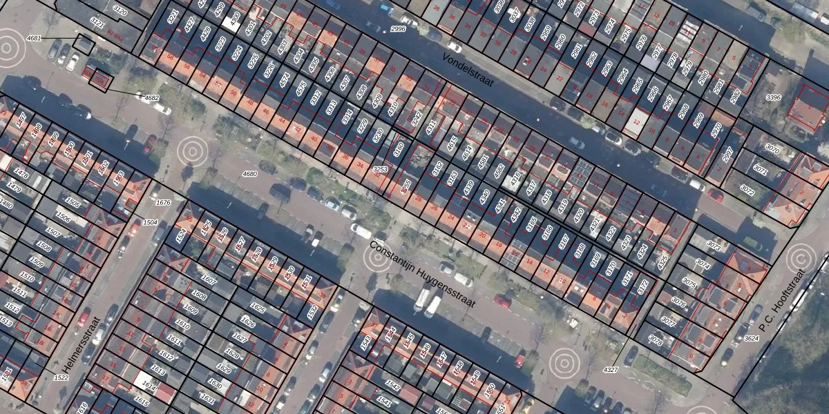 Gebruik de zoekbalk of klik op een perceel voor informatie over de adressen binnen dit perceel.