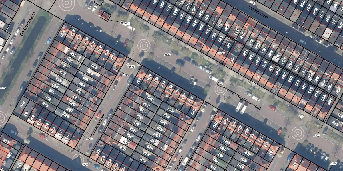 Gebruik de zoekbalk of klik op een perceel voor informatie over de adressen binnen dit perceel.