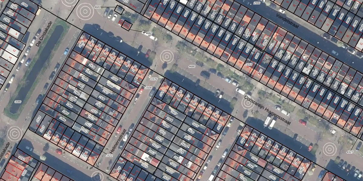 Gebruik de zoekbalk of klik op een perceel voor informatie over de adressen binnen dit perceel.