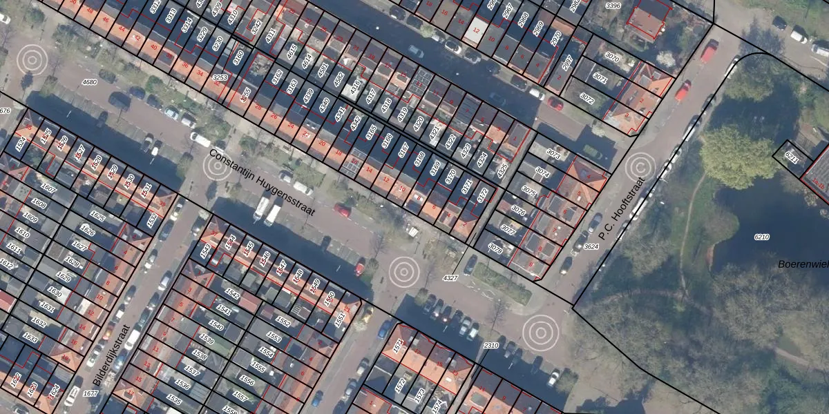 Gebruik de zoekbalk of klik op een perceel voor informatie over de adressen binnen dit perceel.