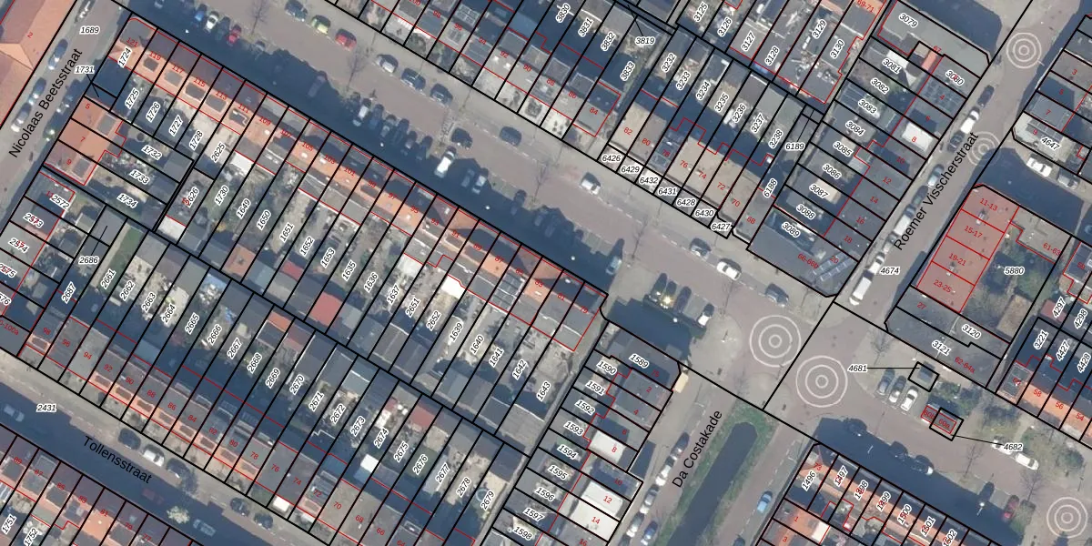 Gebruik de zoekbalk of klik op een perceel voor informatie over de adressen binnen dit perceel.