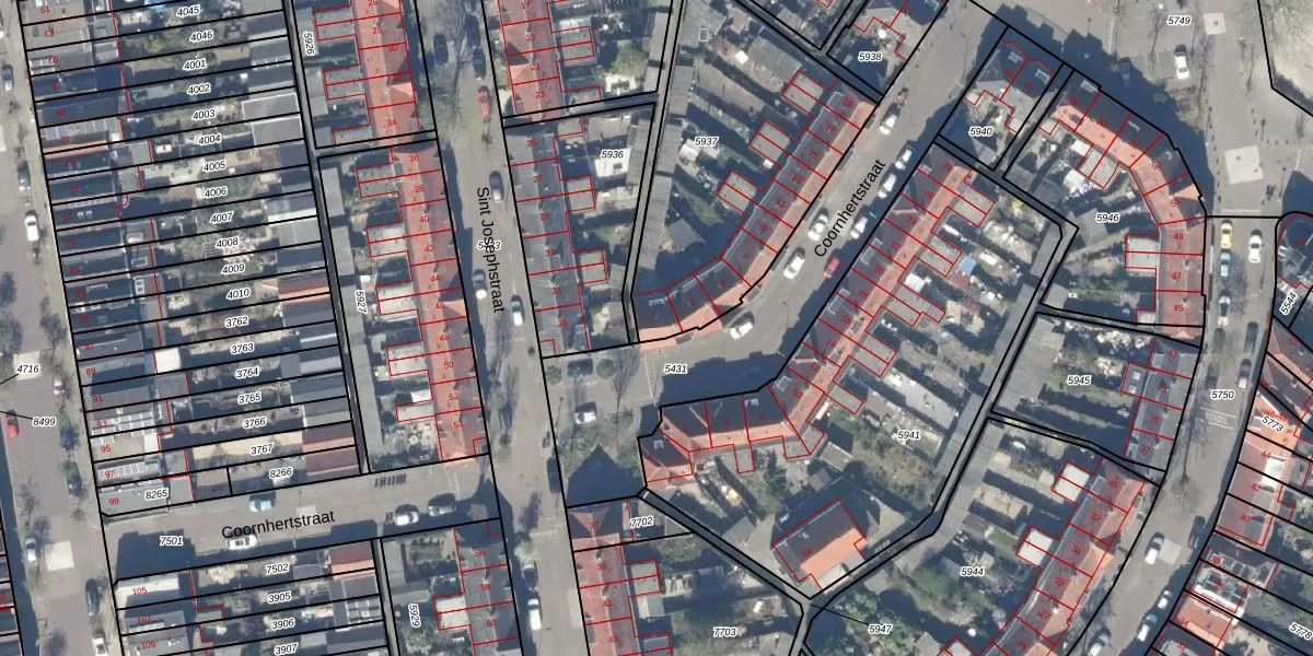 Coornhertstraat 1 is gelegen op kadastraal perceel GDA01A5937. Deze kadastrale aanduiding is uniek en wordt gebruikt door het Kadaster om eigendomsrechten en andere zakelijke rechten vast te leggen. Het perceel maakt onderdeel uit van de kadastrale gemeente Gouda.
