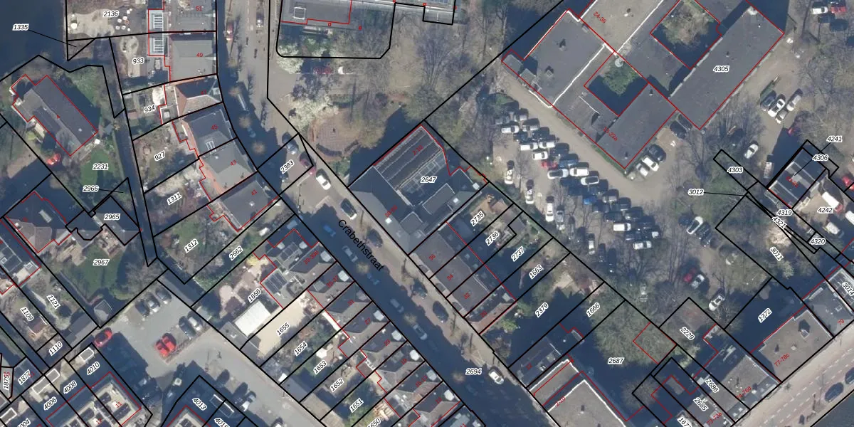 Het perceel waarop Crabethstraat 42 staat heeft een oppervlakte van 530 m². Dit is een groot perceel. De perceeloppervlakte wordt geregistreerd door het Kadaster. Gedetailleerde informatie over de maten van dit perceel kunt u vinden in het rapport Kadastrale kaart met maatvoering van Crabethstraat 42.