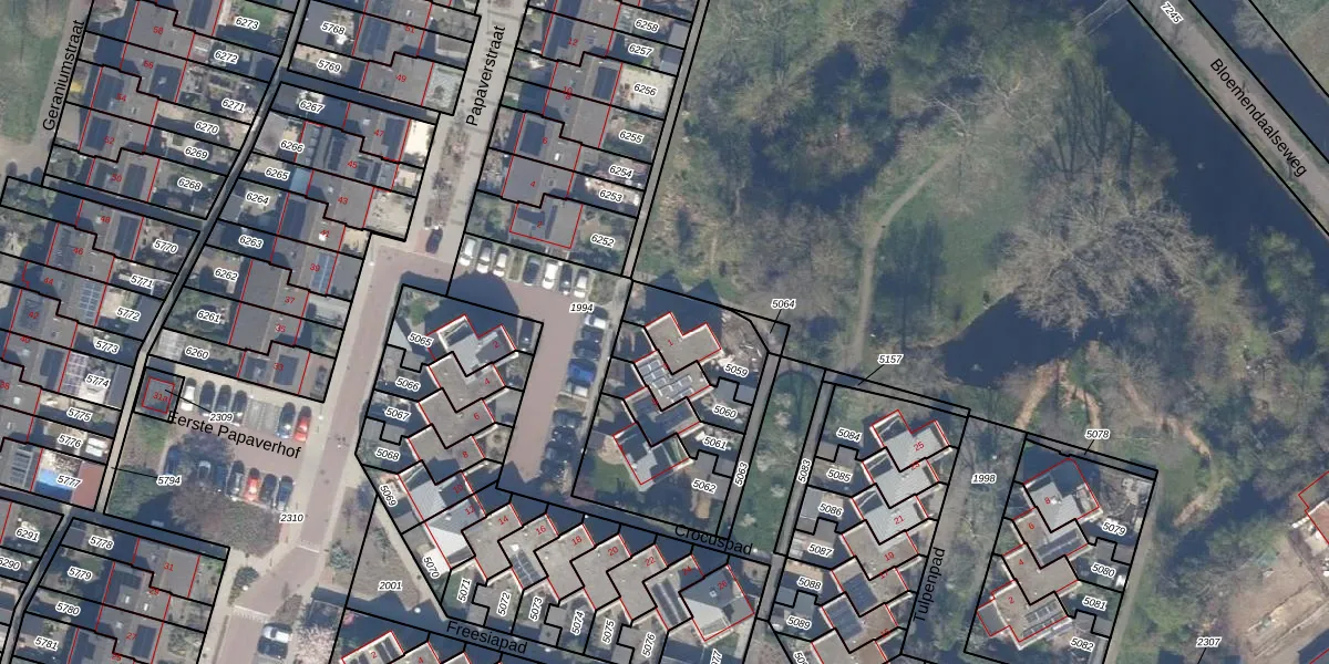 Gebruik de zoekbalk of klik op een perceel voor informatie over de adressen binnen dit perceel.