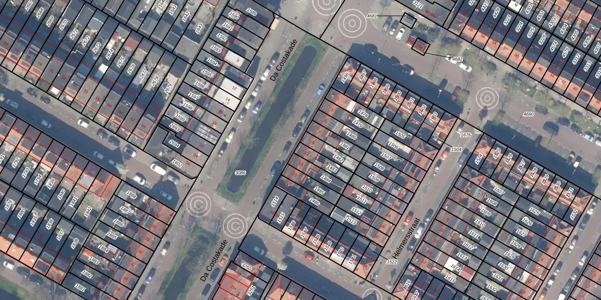 Gebruik de zoekbalk of klik op een perceel voor informatie over de adressen binnen dit perceel.