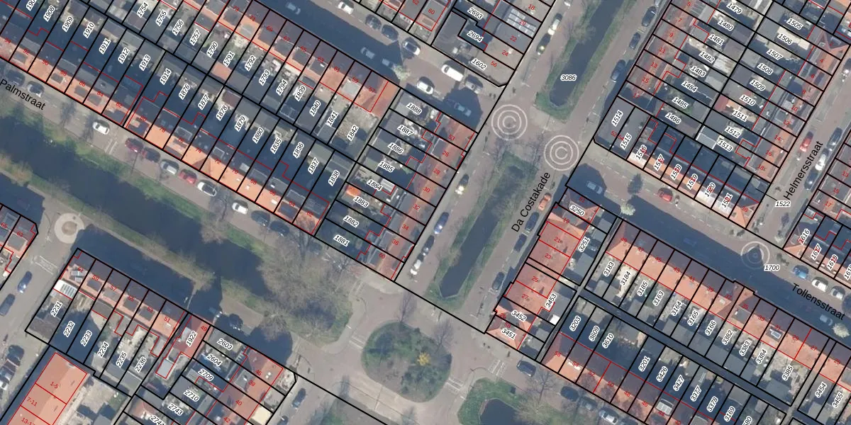 Gebruik de zoekbalk of klik op een perceel voor informatie over de adressen binnen dit perceel.
