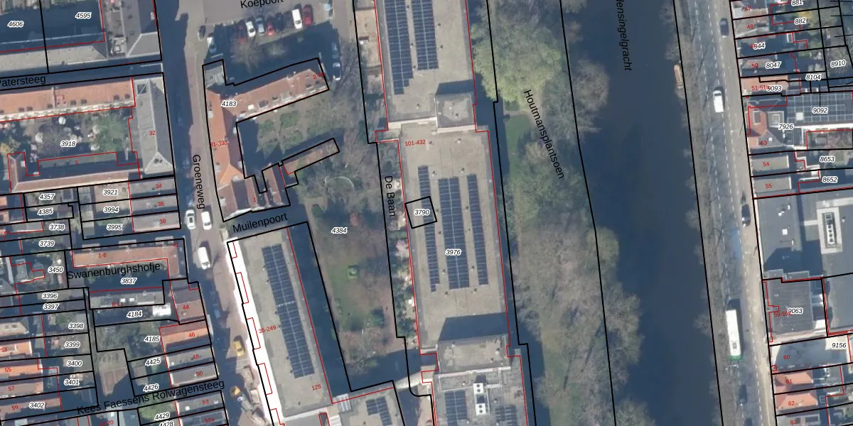 Het adres ligt op het perceel GDA01-C-3790, dat zich in de kadastrale gemeente Gouda bevindt. Het perceel is kleiner dan gemiddeld in Gouda. Het perceel is 36 m² groot, terwijl het gemiddelde ligt op 678,78 m². Het grootste perceel in de kadastrale gemeente is 24,2 ha. Het kleinste perceel heeft een oppervlakte van 0 m². Er zijn 2 adressen aanwezig op het perceel. De huidige grenzen van het perceel zijn digitaal in de Basisregistratie Kadaster (BRK) geregistreerd op 05-02-1998.
