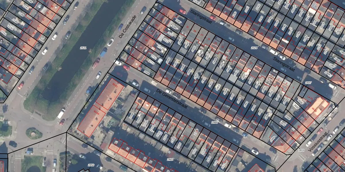 Het perceel waarop De Genestetstraat 28 staat heeft een oppervlakte van 93 m². Dit is een klein perceel. De perceeloppervlakte wordt geregistreerd door het Kadaster. Gedetailleerde informatie over de maten van dit perceel kunt u vinden in het rapport Kadastrale kaart met maatvoering van De Genestetstraat 28.