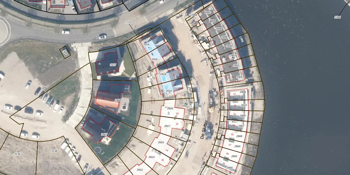 De Slufter 8 is gelegen op kadastraal perceel GDA01N2919. Deze kadastrale aanduiding is uniek en wordt gebruikt door het Kadaster om eigendomsrechten en andere zakelijke rechten vast te leggen. Het perceel maakt onderdeel uit van de kadastrale gemeente Gouda.