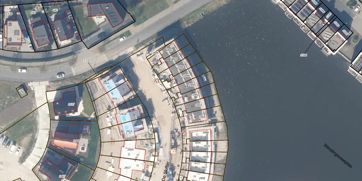De Slufter 9 is gelegen op kadastraal perceel GDA01N2899. Deze kadastrale aanduiding is uniek en wordt gebruikt door het Kadaster om eigendomsrechten en andere zakelijke rechten vast te leggen. Het perceel maakt onderdeel uit van de kadastrale gemeente Gouda.