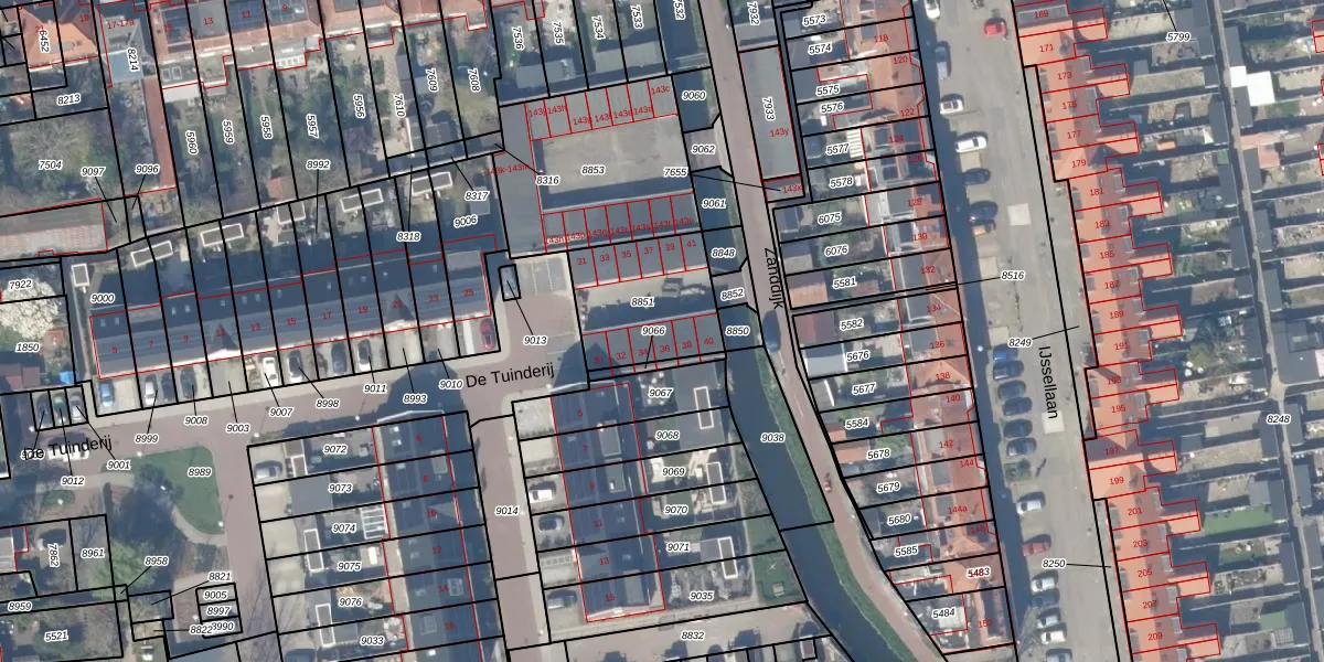 De Tuinderij 36 is gelegen op kadastraal perceel GDA01A8851. Deze kadastrale aanduiding is uniek en wordt gebruikt door het Kadaster om eigendomsrechten en andere zakelijke rechten vast te leggen. Het perceel maakt onderdeel uit van de kadastrale gemeente Gouda.