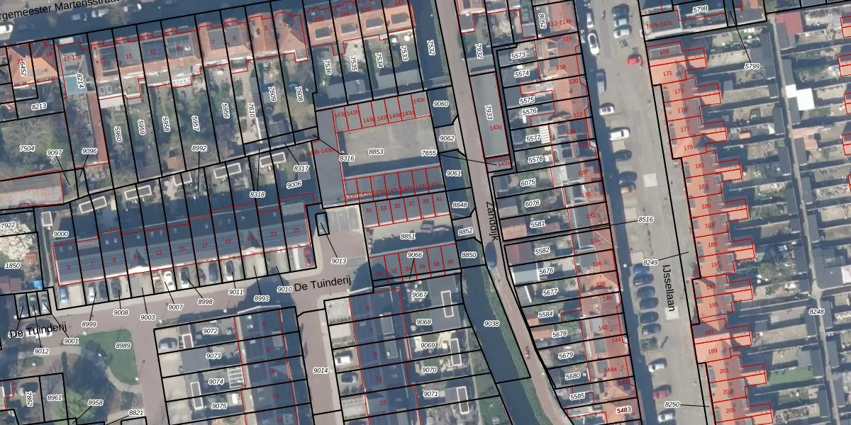 De Tuinderij 39 is gelegen op kadastraal perceel GDA01A8851. Deze kadastrale aanduiding is uniek en wordt gebruikt door het Kadaster om eigendomsrechten en andere zakelijke rechten vast te leggen. Het perceel maakt onderdeel uit van de kadastrale gemeente Gouda.