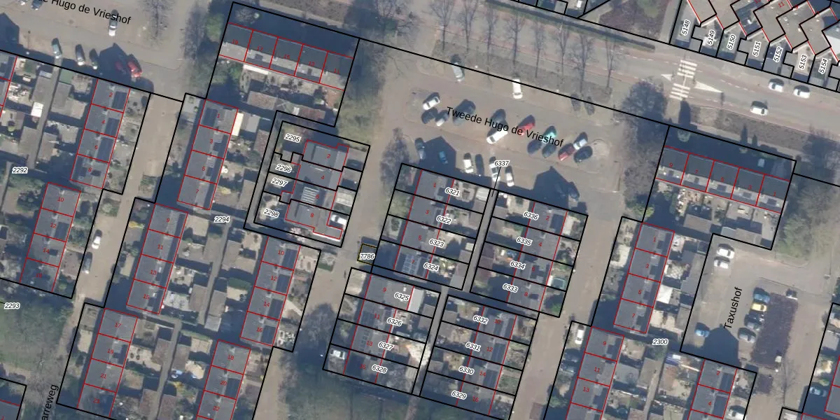 Gebruik de zoekbalk of klik op een perceel voor informatie over de adressen binnen dit perceel.