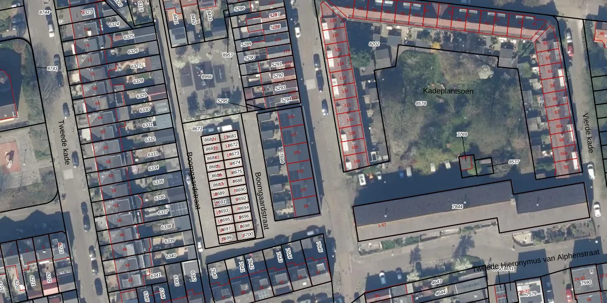 Het perceel waarop het adres ligt is GDA01-A-7698. De afkorting 'GDA01' staat voor kadastrale gemeente Gouda. Het perceel is kleiner dan gemiddeld in Gouda. Het perceel is 541 m² groot, terwijl het gemiddelde ligt op 680,8 m². Het grootste perceel in de kadastrale gemeente is 24,2 ha. Het kleinste perceel heeft een oppervlakte van 0 m². Op het perceel liggen in totaal 6 adressen. De huidige grenzen van het perceel zijn digitaal in de Basisregistratie Kadaster (BRK) geregistreerd op 04-08-2003.