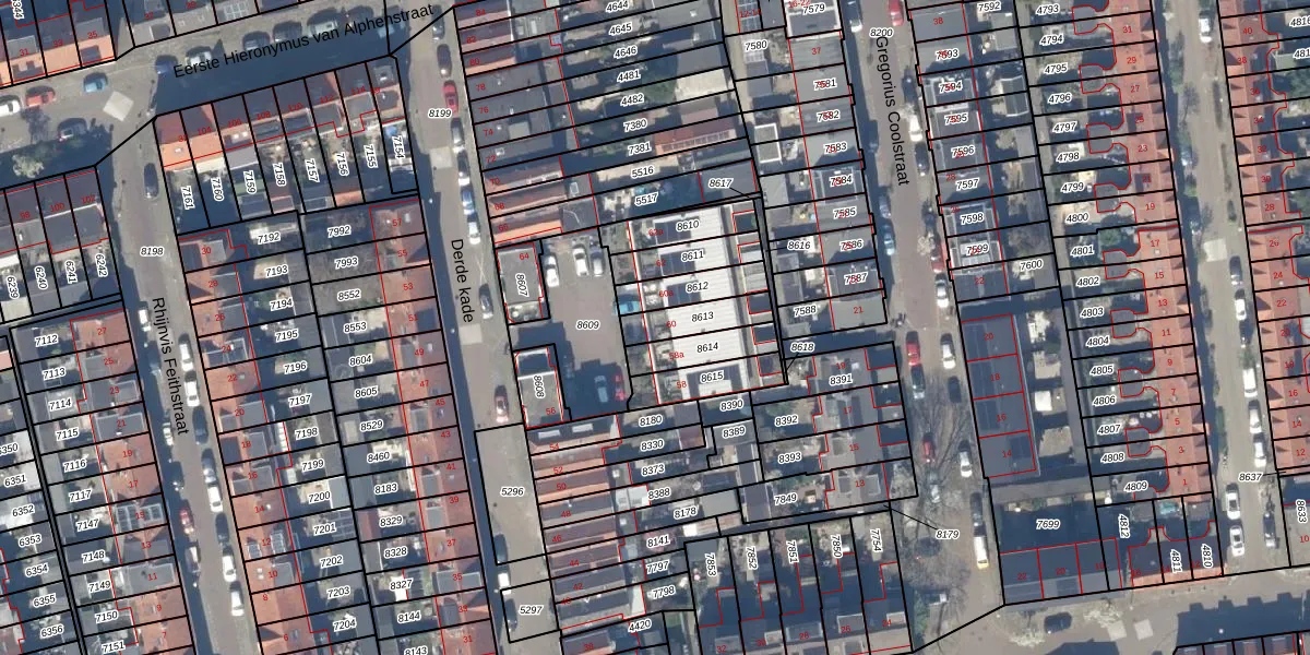 Gebruik de zoekbalk of klik op een perceel voor informatie over de adressen binnen dit perceel.
