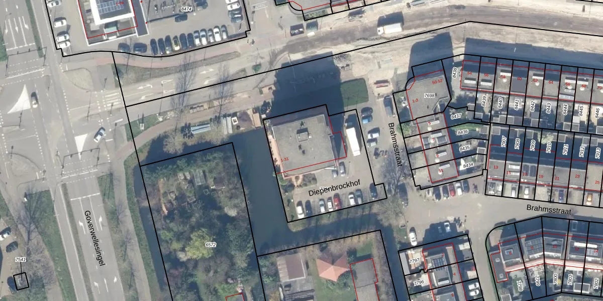 Het perceel waarop Diepenbrockhof 21 staat heeft een oppervlakte van 1061 m². Dit is een zeer groot perceel. De perceeloppervlakte wordt geregistreerd door het Kadaster. Gedetailleerde informatie over de maten van dit perceel kunt u vinden in het rapport Kadastrale kaart met maatvoering van Diepenbrockhof 21.