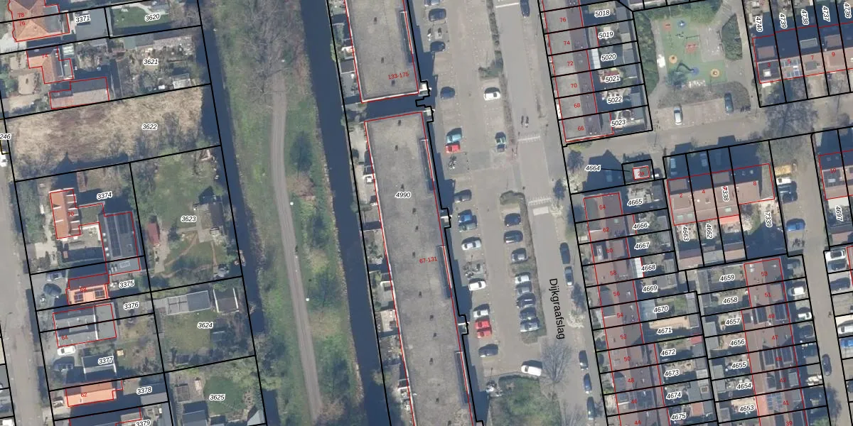 Dijkgraafslag 113 is gelegen op kadastraal perceel GDA01K4990. Deze kadastrale aanduiding is uniek en wordt gebruikt door het Kadaster om eigendomsrechten en andere zakelijke rechten vast te leggen. Het perceel maakt onderdeel uit van de kadastrale gemeente Gouda.