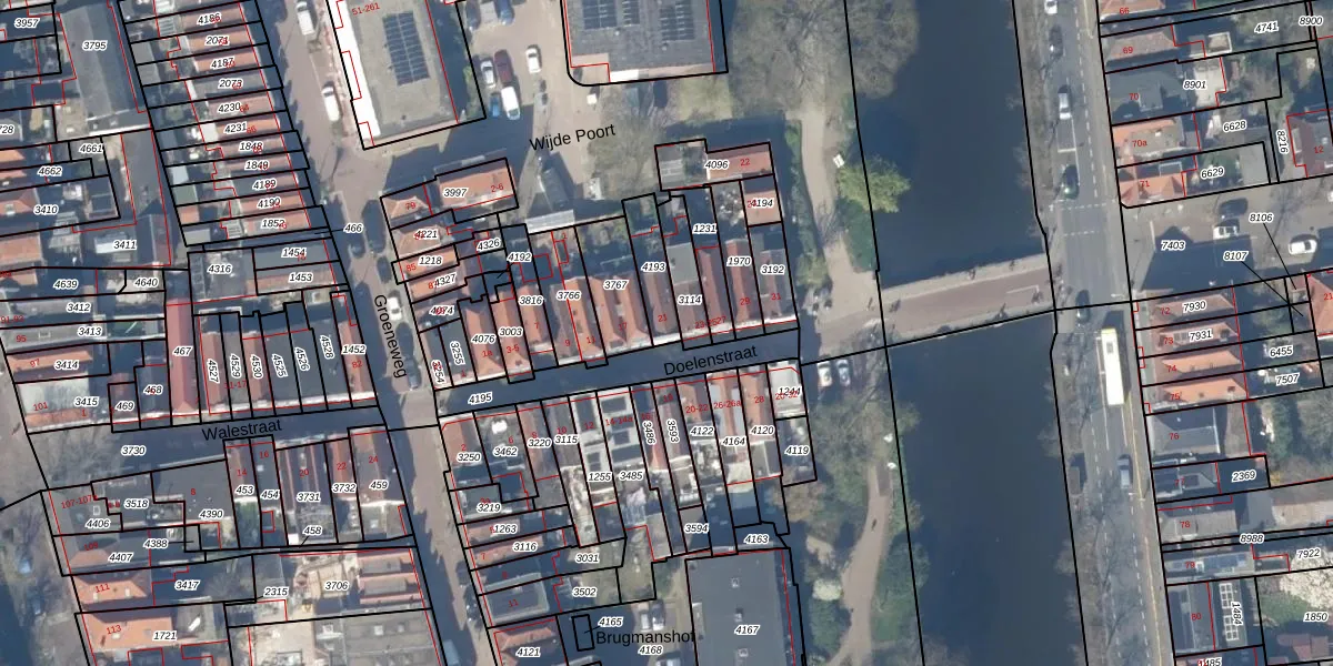 Het perceel waarop Doelenstraat 21 staat heeft een oppervlakte van 105 m². Dit is een middelgroot perceel. De perceeloppervlakte wordt geregistreerd door het Kadaster. Gedetailleerde informatie over de maten van dit perceel kunt u vinden in het rapport Kadastrale kaart met maatvoering van Doelenstraat 21.