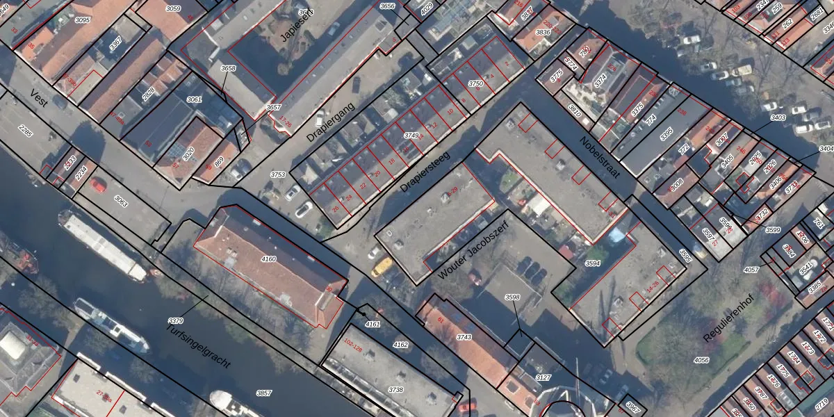 Het perceel waarop Drapiersteeg 19 staat heeft een oppervlakte van 1700 m². Dit is een zeer groot perceel. De perceeloppervlakte wordt geregistreerd door het Kadaster. Gedetailleerde informatie over de maten van dit perceel kunt u vinden in het rapport Kadastrale kaart met maatvoering van Drapiersteeg 19.