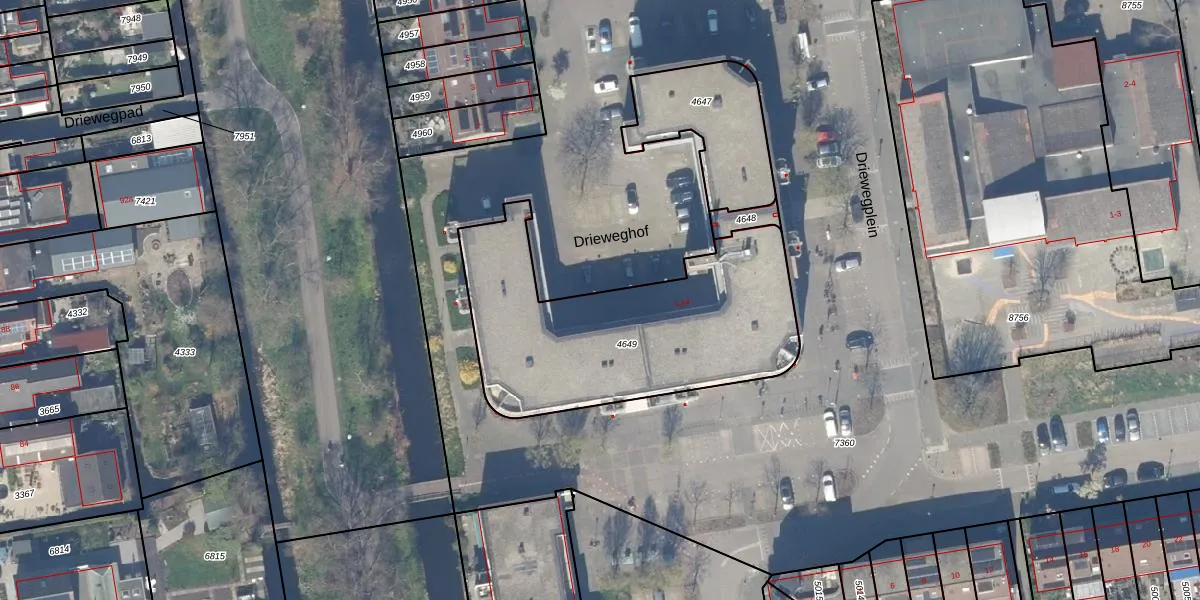 Driewegplein 20 is gelegen op kadastraal perceel GDA01K4649. Deze kadastrale aanduiding is uniek en wordt gebruikt door het Kadaster om eigendomsrechten en andere zakelijke rechten vast te leggen. Het perceel maakt onderdeel uit van de kadastrale gemeente Gouda.