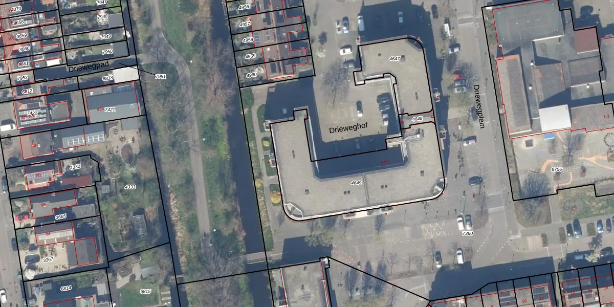 Driewegplein 23 is gelegen op kadastraal perceel GDA01K4649. Deze kadastrale aanduiding is uniek en wordt gebruikt door het Kadaster om eigendomsrechten en andere zakelijke rechten vast te leggen. Het perceel maakt onderdeel uit van de kadastrale gemeente Gouda.