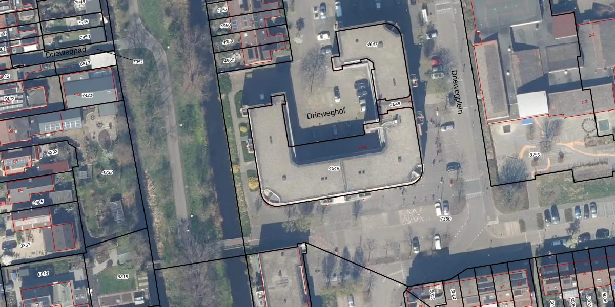 Driewegplein 36 is gelegen op kadastraal perceel GDA01K4649. Deze kadastrale aanduiding is uniek en wordt gebruikt door het Kadaster om eigendomsrechten en andere zakelijke rechten vast te leggen. Het perceel maakt onderdeel uit van de kadastrale gemeente Gouda.