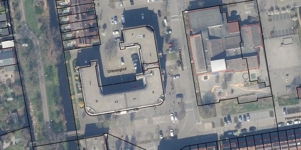 Driewegplein 45 is gelegen op kadastraal perceel GDA01K4649. Deze kadastrale aanduiding is uniek en wordt gebruikt door het Kadaster om eigendomsrechten en andere zakelijke rechten vast te leggen. Het perceel maakt onderdeel uit van de kadastrale gemeente Gouda.