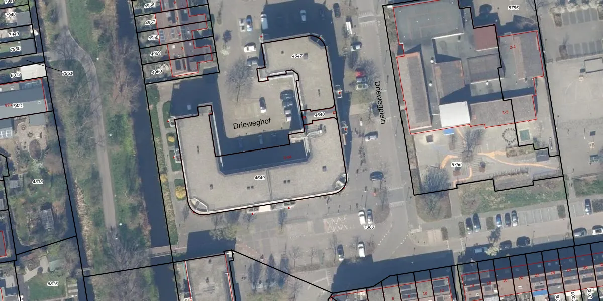 Driewegplein 46 is gelegen op kadastraal perceel GDA01K4649. Deze kadastrale aanduiding is uniek en wordt gebruikt door het Kadaster om eigendomsrechten en andere zakelijke rechten vast te leggen. Het perceel maakt onderdeel uit van de kadastrale gemeente Gouda.