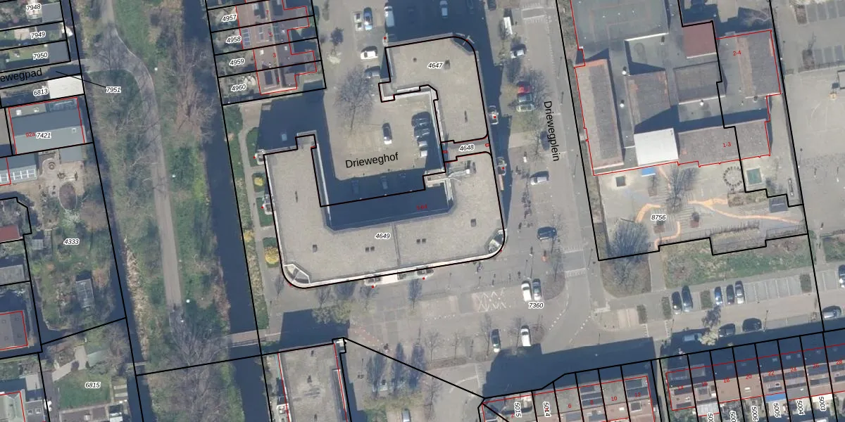 Driewegplein 47 is gelegen op kadastraal perceel GDA01K4649. Deze kadastrale aanduiding is uniek en wordt gebruikt door het Kadaster om eigendomsrechten en andere zakelijke rechten vast te leggen. Het perceel maakt onderdeel uit van de kadastrale gemeente Gouda.