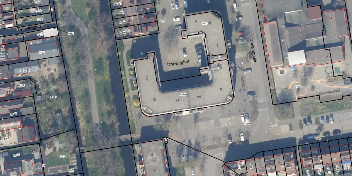 Driewegplein 50 is gelegen op kadastraal perceel GDA01K4649. Deze kadastrale aanduiding is uniek en wordt gebruikt door het Kadaster om eigendomsrechten en andere zakelijke rechten vast te leggen. Het perceel maakt onderdeel uit van de kadastrale gemeente Gouda.