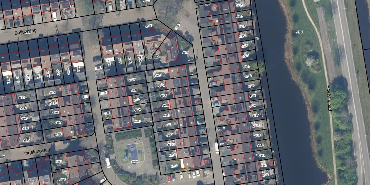 Gebruik de zoekbalk of klik op een perceel voor informatie over de adressen binnen dit perceel.