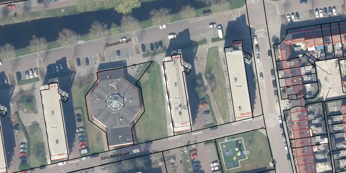Dunantsingel 164 is gelegen op kadastraal perceel GDA01K9104. Deze kadastrale aanduiding is uniek en wordt gebruikt door het Kadaster om eigendomsrechten en andere zakelijke rechten vast te leggen. Het perceel maakt onderdeel uit van de kadastrale gemeente Gouda.